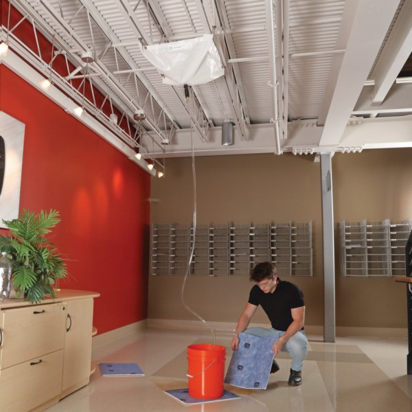 Inhoud: 1 - 76cm x 76cm Leak Diverter Tarp (TLS552-TR), 4 - 1.5m Verstelbare ophangriemen (TLS559), 1 - 305cm Afvoerslang (TLS690), 1 - Snelkoppeling (TLS680), 5 - 38cm x 43cm Water Mats (WTR006), 1 - Transparante draagtas met trekkoord