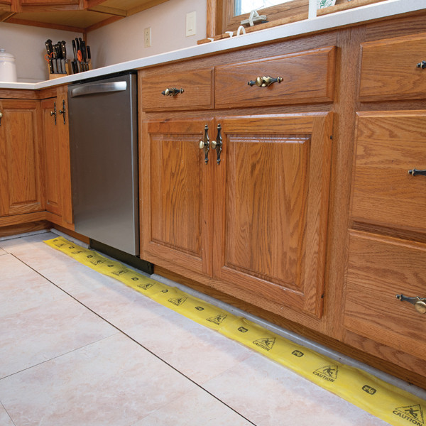 Uitgezette strips vormen een barrière om verdere lekkages en druppels te helpen voorkomen die kunnen ontsnappen en zich in looppaden verspreiden; ook geschikt om te voorkomen dat water onder deuren doorsijpelt.
